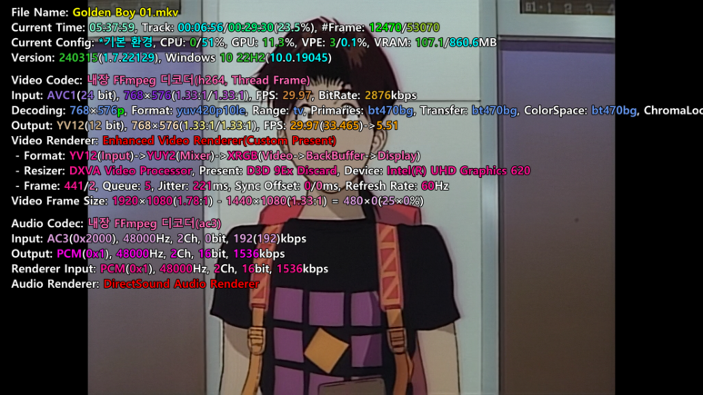 최대 사이즈 BD 버전을 구해도 해상도는 768x576의 좌우측 검은 화면 출력
