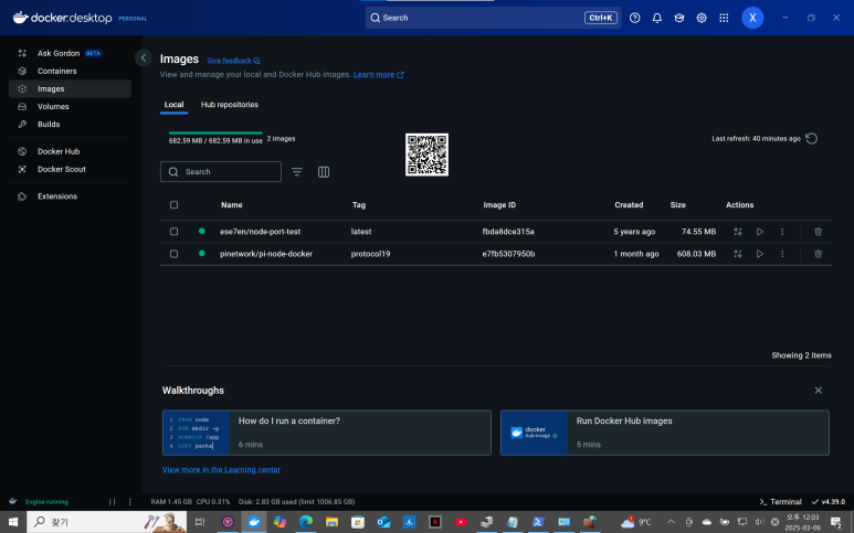 파이 노드 도커 파일은 프로토컬 19 라는 태그를 달고 한달전에 만들어져서 이미지 메뉴에 자리잡고 있습니다