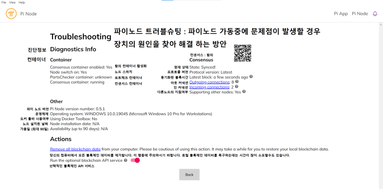 그리고 데이터 갱신이 완료가 되면 pi-network 컨테이너가 작동되면서