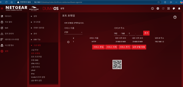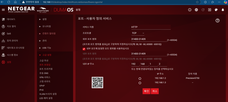 저의 경우 넷기어 라우터 설정입니다