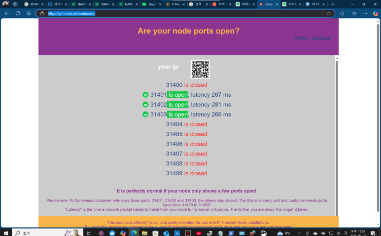 노드에서 처음 포트 체크 (CHECK NOW) 진행 하게 되면 10개의 포트가 작동하는지 여부를 확인하게 됩니다.