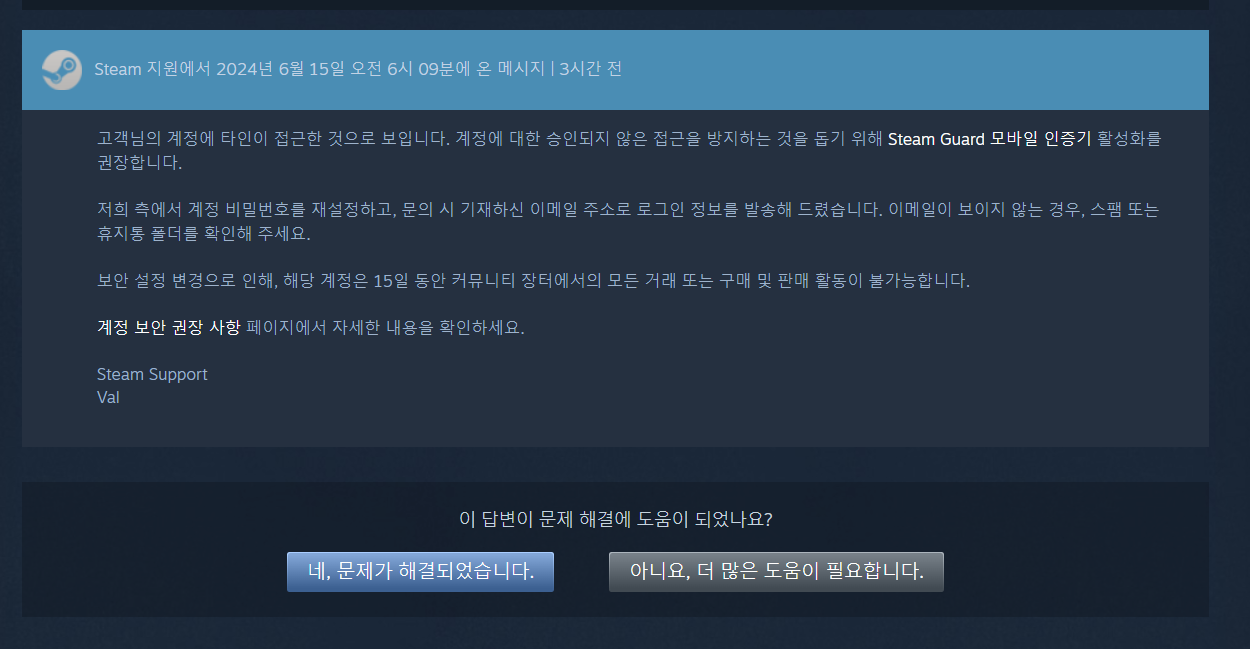 스팀계정 해킹당함