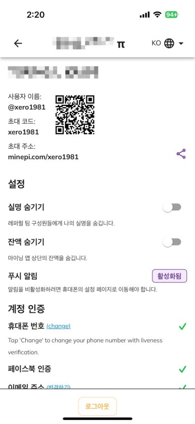 파이코인 30회 이상 채굴 하게 되면 KYC(본인인증) 하라고 하는데 그부분은 다음으로 넘어 가셔도 됩니다.